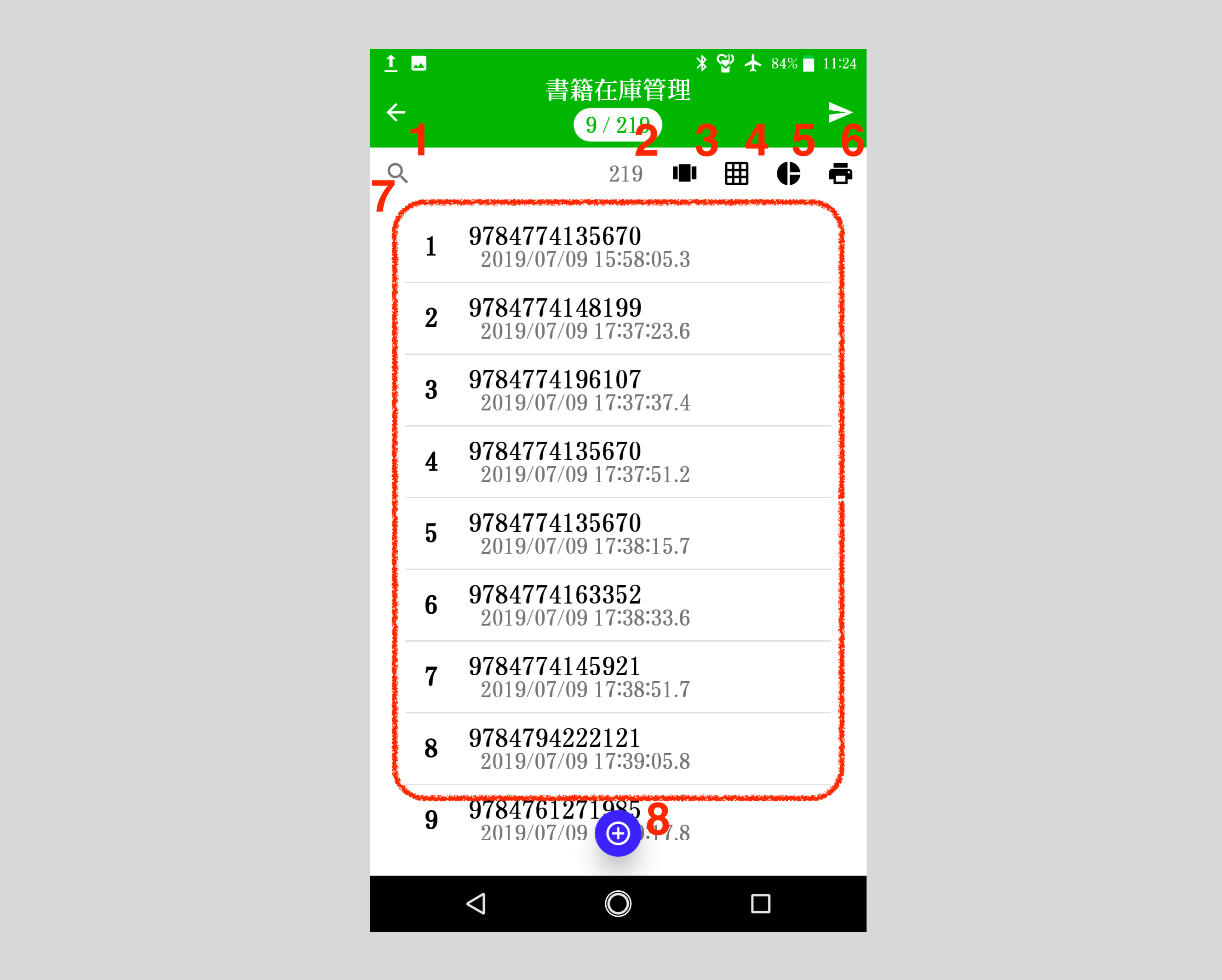 - 現在選択レコード / 登録レコード数表示 (カードモードとリストモード表示切り替え)