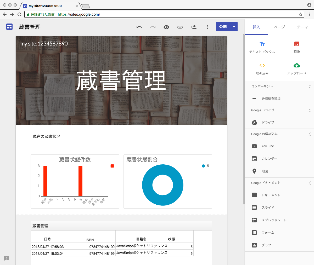 完成したスプレッドシートを外出先でも閲覧できるようにグーグルサイトでサイトを作成します。
