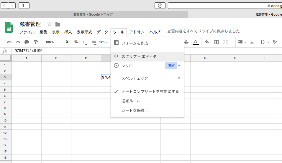 google spreadsheet データ入力 Forme Pro Forme lite Mac 国会図書館api 蔵書管理