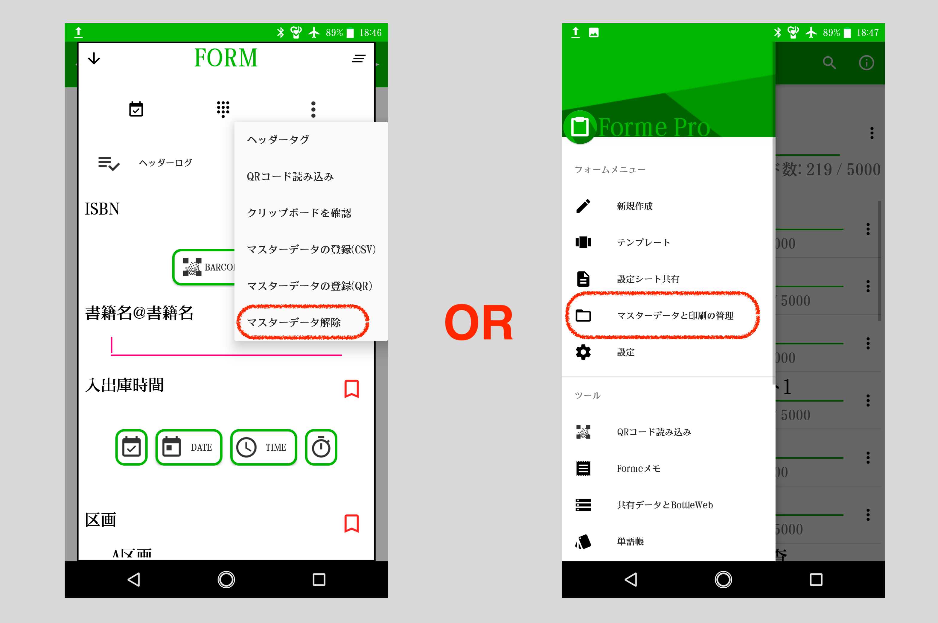 Androidアプリ Forme Ver9.729からマスターデータに対応しています。 マスターデータはフォーム毎に設定ができ、設定方法もCSV(OS4.4以上)、QRコードがあります。 ここではマスターデータ関連の機能について説明します。