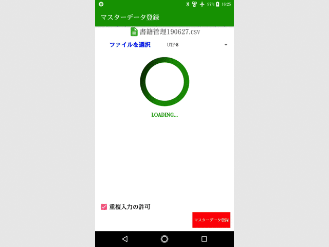 読み込みの際に重複入力の許可をオフにすると一度転記されたマスターデータは転記できなくなります。