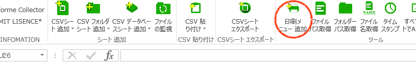 印刷メニューを追加します。本来印刷メニューはFormeCollector.xlsmが作成したシート上のデータを印刷するための機能なのでCSVデータが必要でした。