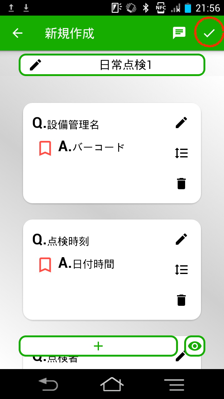 問題がなければ、赤丸内のチェックをタッチして完了します。これでフォームが完成しました。