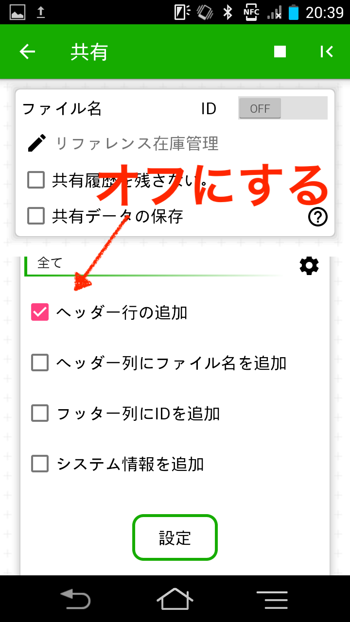 赤丸の詳細設定をタップし、表示されたヘッダー行の追加をオフにする。