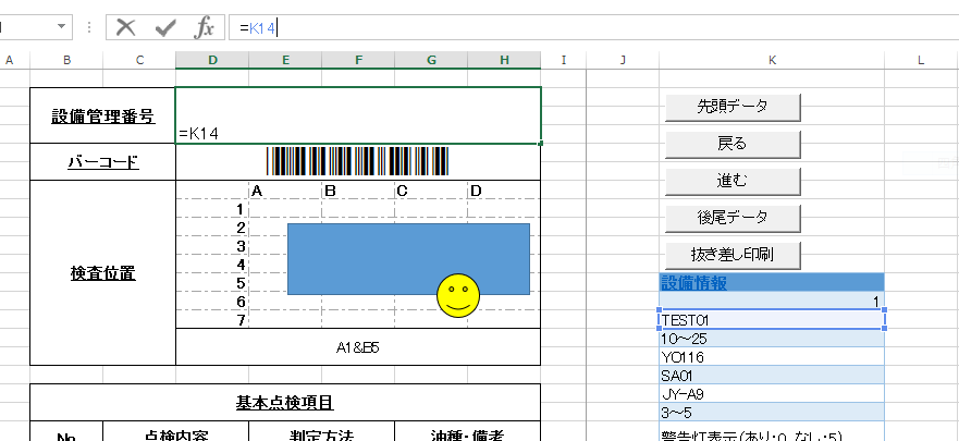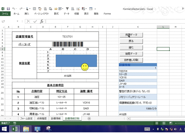 ただ、単純に作成すると言っても設備数だけ印刷物を準備するのは大変です。 ここでは少し裏技的な事を使い、抜き差し印刷を実装します。(抜き差し印刷機能はFormeCollector.xlsmのみです。Free版にはついていません。)