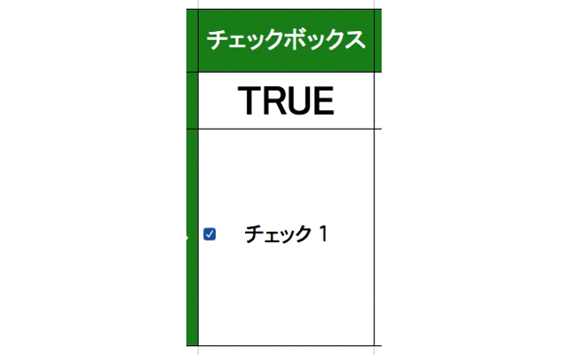 チェックボックスは参照先のセルに選択状態に合わせ、TRUE , FALSE を書き込みます。