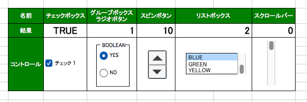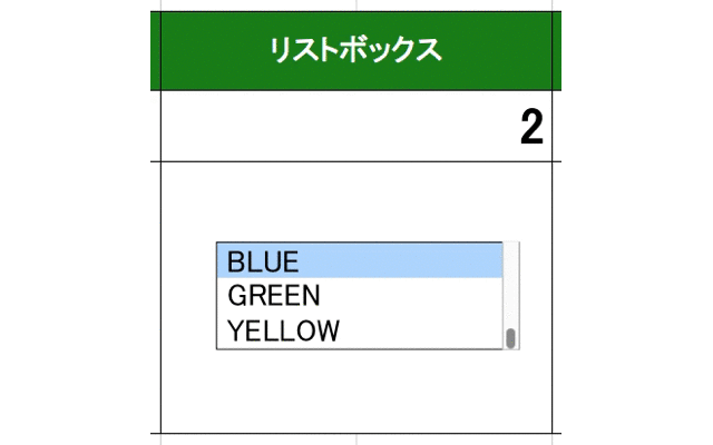 リストボックスは参照先のセルにリストで選択されている選択肢の順番を書き込みます。Mac版では少し動きがカクカクします。