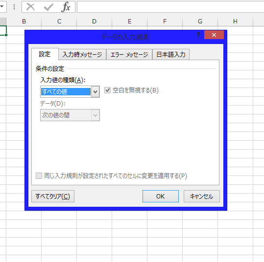 設定には共通して”空白を無視する”のオプションがありますが、これをオフにすると、一度入力したものを削除したときに、 エラーメッセージが表示されるようになります。