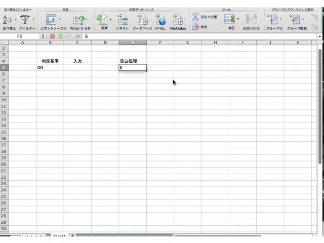 ここでは、判定基準のセルが “ON” の時だけ、入力できるようになっています。
