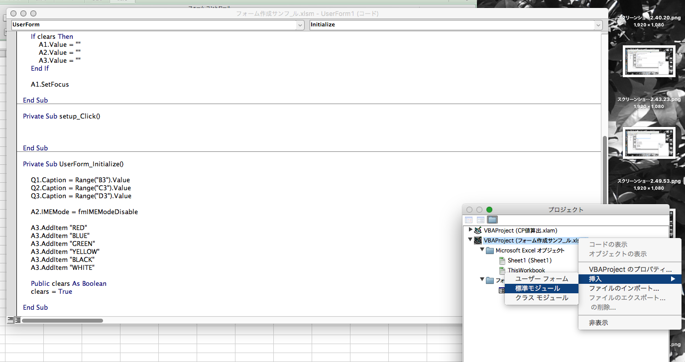 そっちの方が動作が早いです。また、ユーザーフォームはMacで作成したものでマージンを大きく取っていないものは 必ず、Windowsで表示が変になります。イメージコントロールも対応していません。