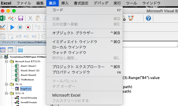 Excel 2019 for Mac でのユーザーフォーム