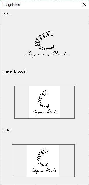 検証用にWindows版で作成したユーザーフォーム上のイメージコントロールは以下の3つです。