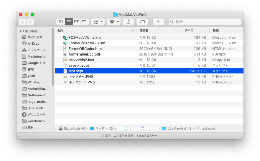 Excel VBA で 特定のフォルダに保存する AppleScript を作成する