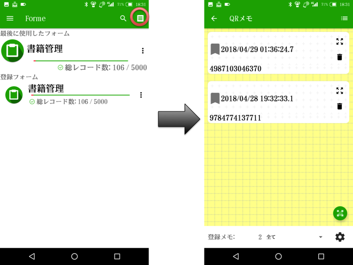 7.ISBN検索機能を付ける。formeには”QRメモ”機能が付いています。 この機能で作成したtxtデータを元にアーカイブ内を検索し、結果をメールで返信する機能を追加します。