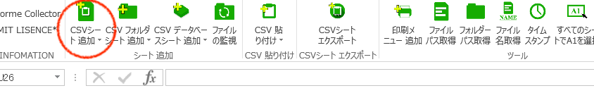 FormeCollector.xlsmのFormeタブ > CSVシートを追加 > defaultをクリックします。