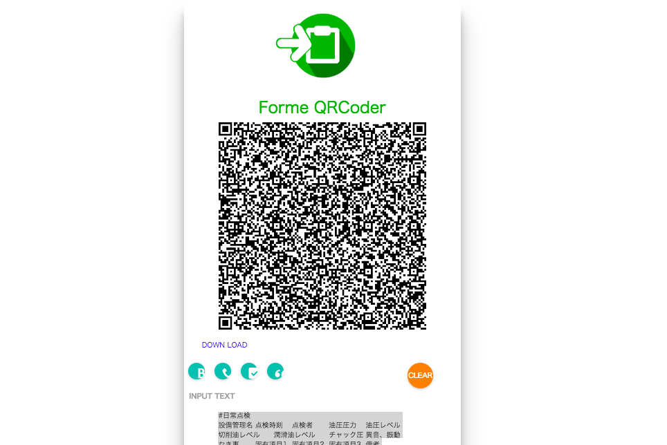 変更点は点検、調整のフラグを追加し、各項目を数値入力へ変更しました。点検者の操作性は落ちますが、正確なデータを得ることができます。 このフォームのQRコードを貼り付けておきます。