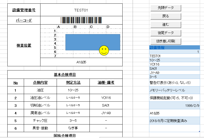 ただ、単純に作成すると言っても設備数だけ印刷物を準備するのは大変です。 ここでは少し裏技的な事を使い、抜き差し印刷を実装します。(抜き差し印刷機能はFormeCollector.xlsmのみです。Free版にはついていません。)